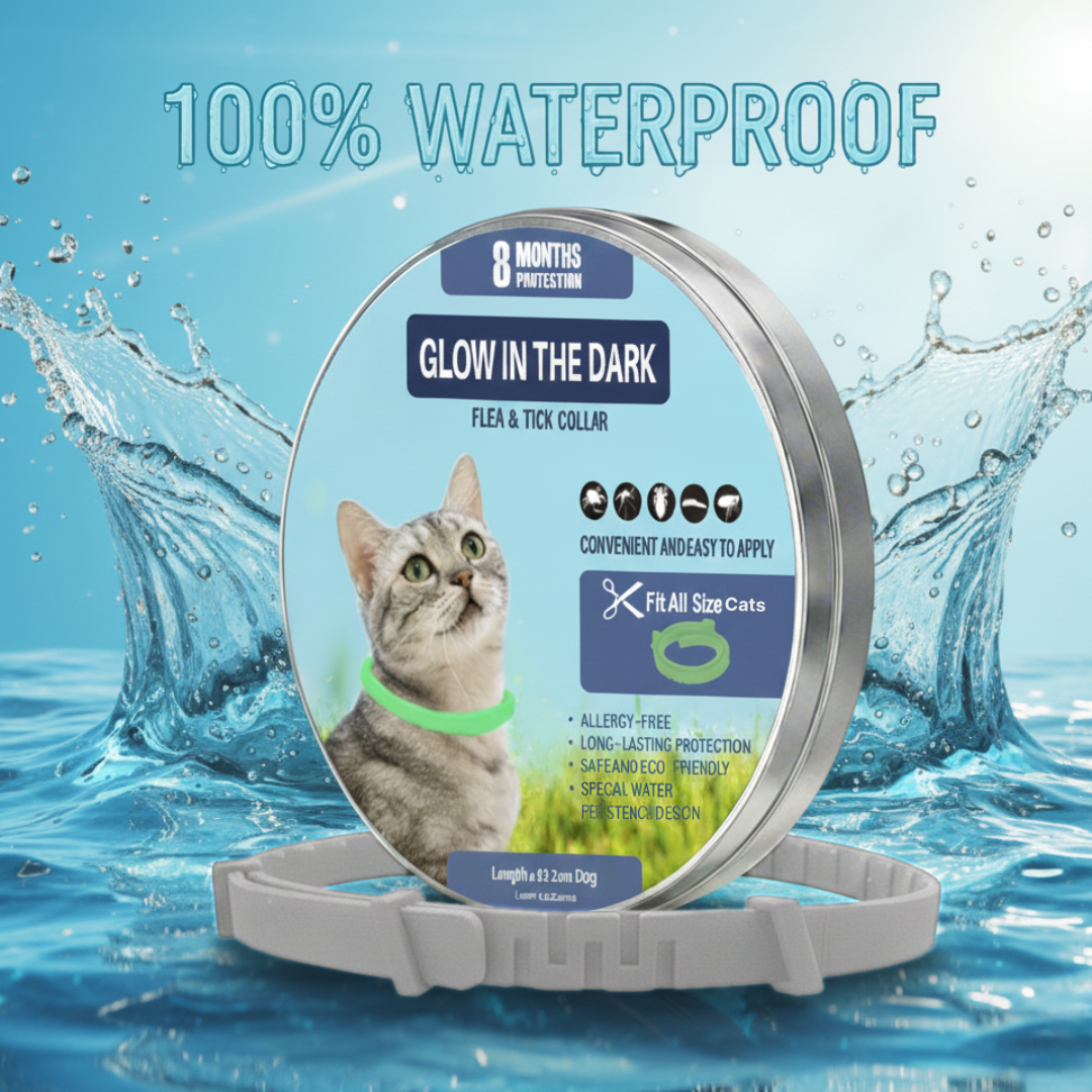 Yes, your pet can swim or bathe without removing the collar and it's not only waterproof but it glows at night!