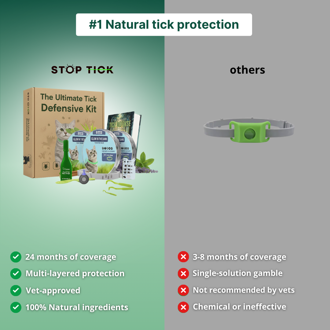 By following our guide, our kit offers the most advanced pre-bite protection on the market. With multi-layered defense — natural repellents, ultrasonic technology, and vet-approved tools — ticks are stopped before they can attach or feed.